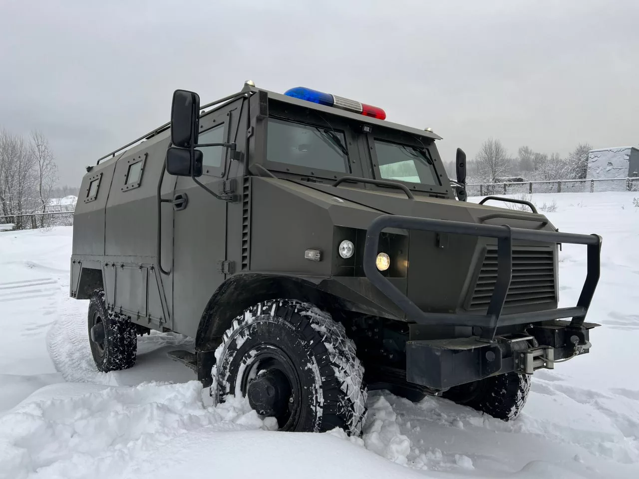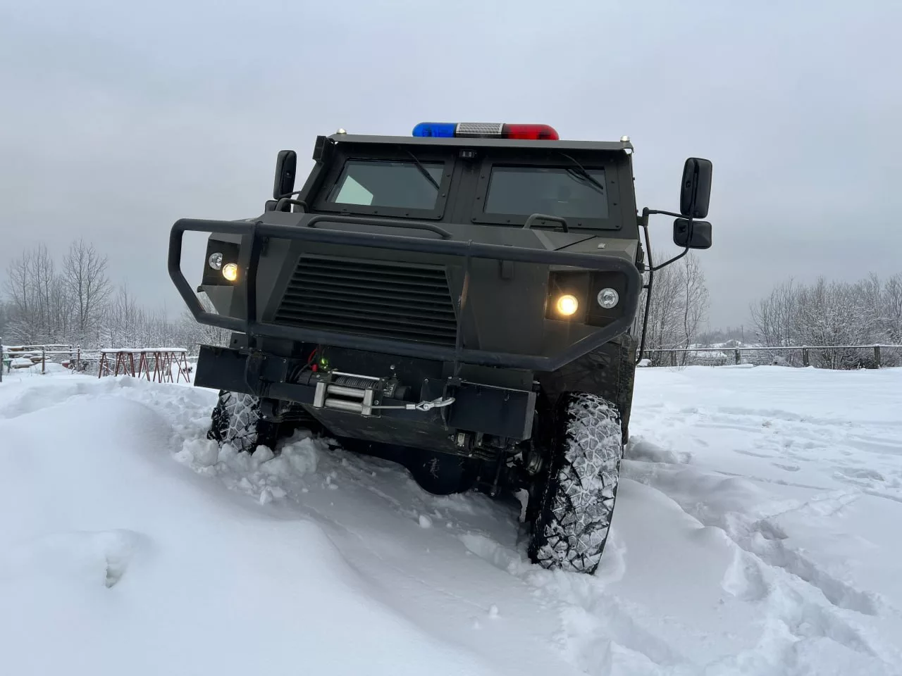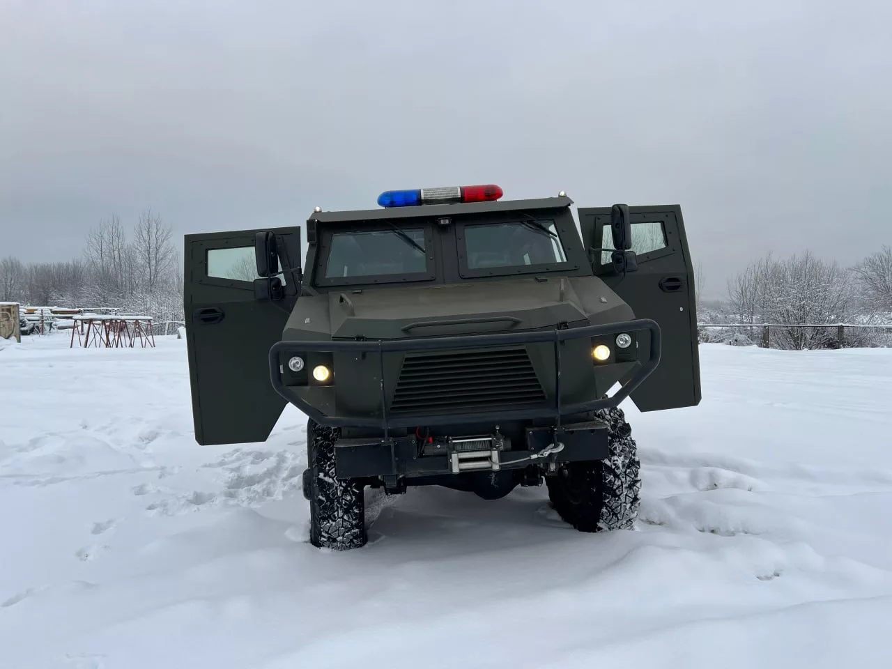 Моторный отсек защищен бронированным капотом, а окна кузова и дверей оборудованы бронестеклами. Автомобиль также оснащен люком с съемными щитками, что позволяет вести огонь изнутри.