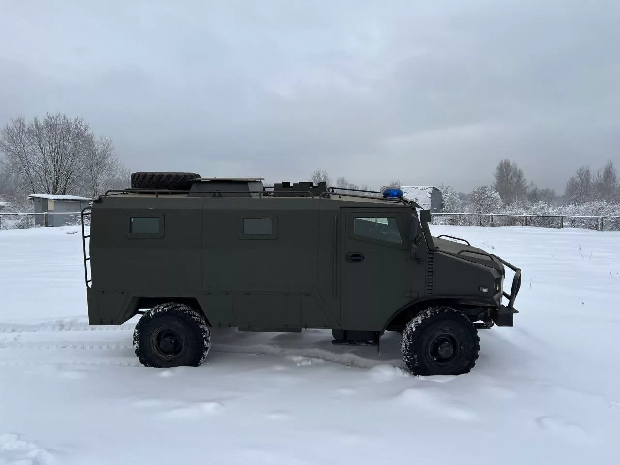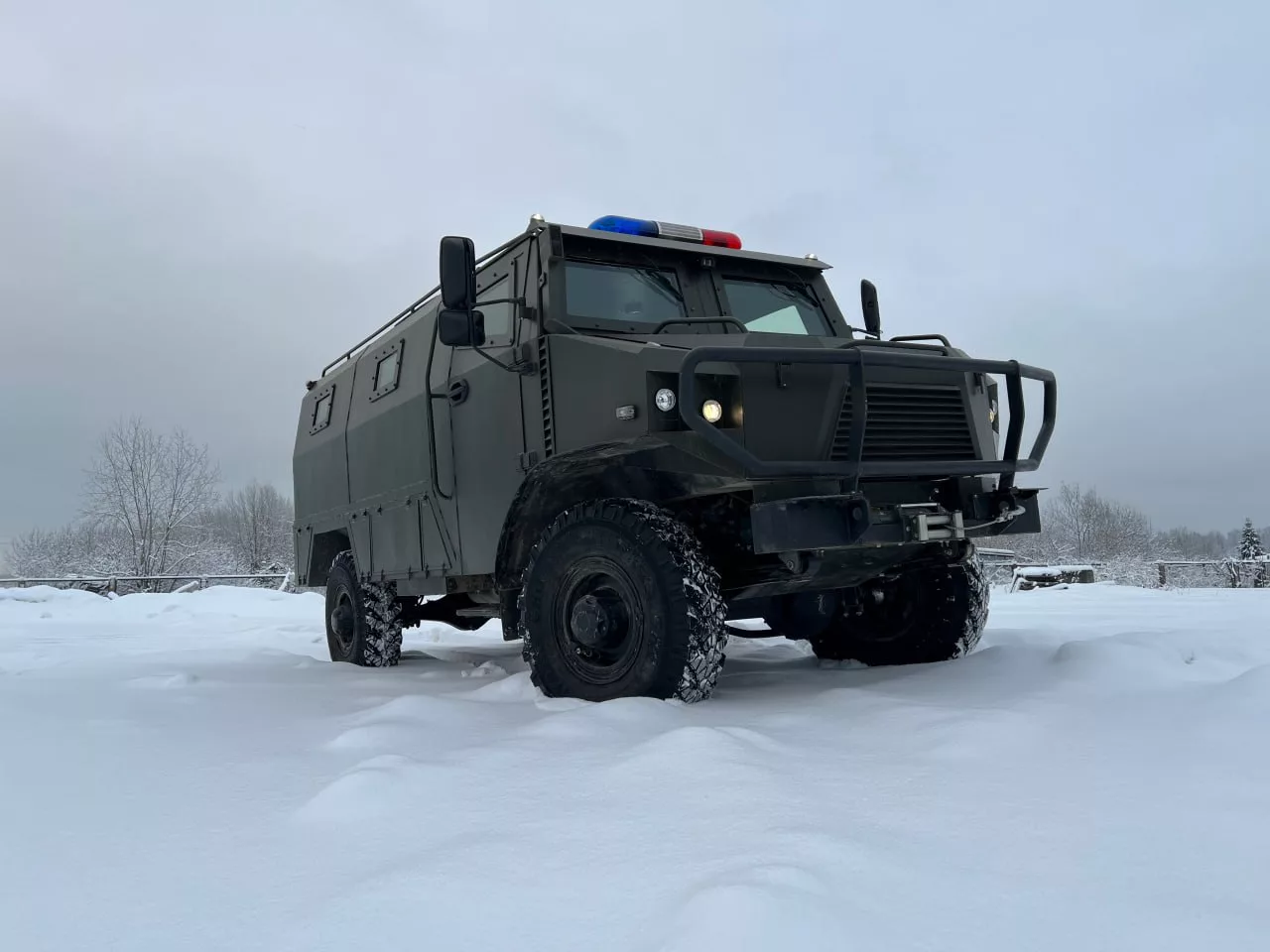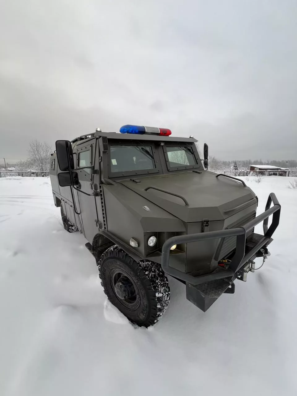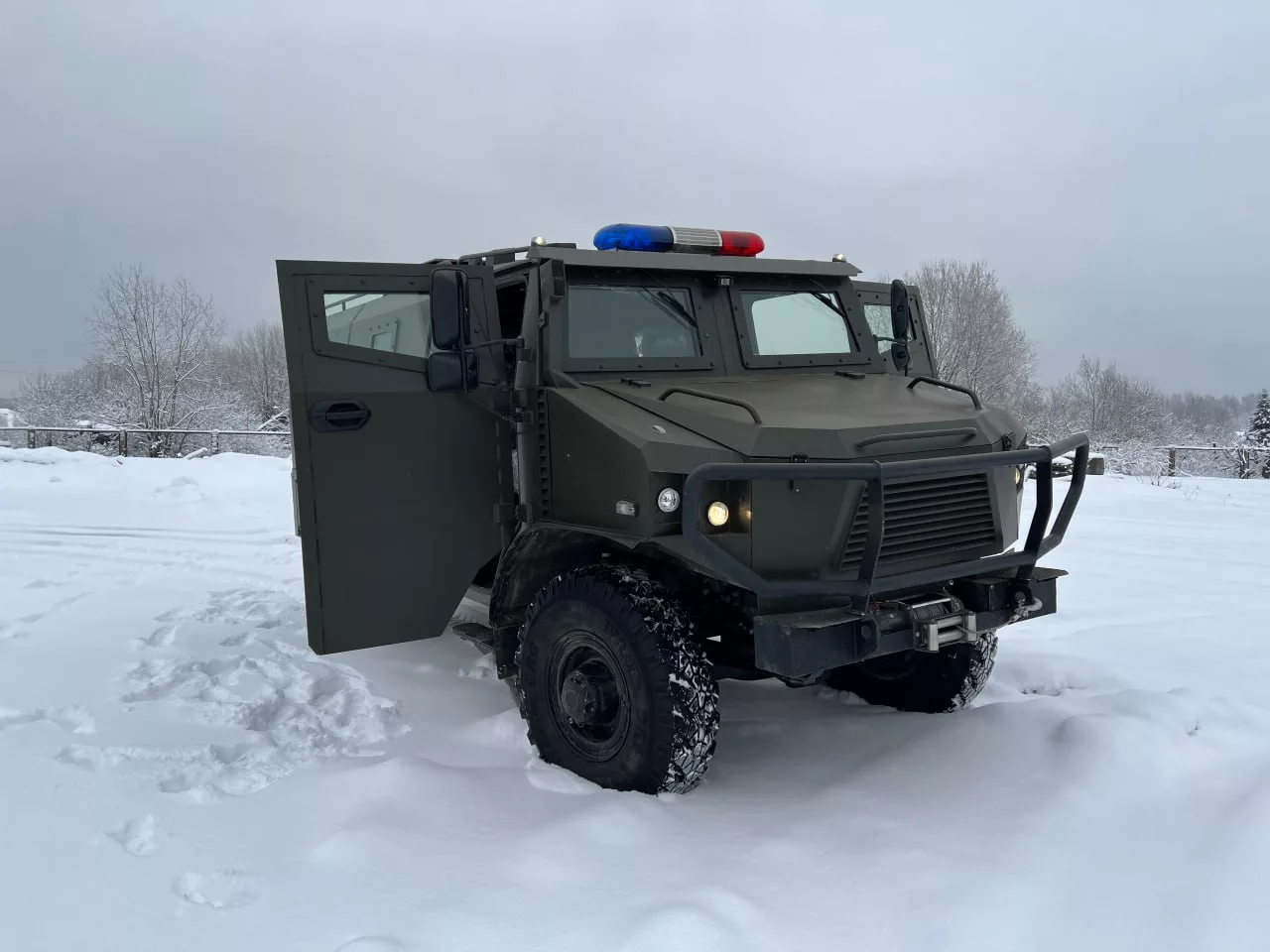 Моторный отсек защищен бронированным капотом, а окна кузова и дверей оборудованы бронестеклами. Автомобиль также оснащен люком с съемными щитками, что позволяет вести огонь изнутри.