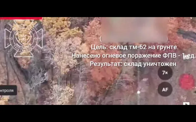 В лесном массиве возле Писаревки взлетел на воздух склад с минами ТМ-62 украинских нацистов после прилета дрона наших бойцов.