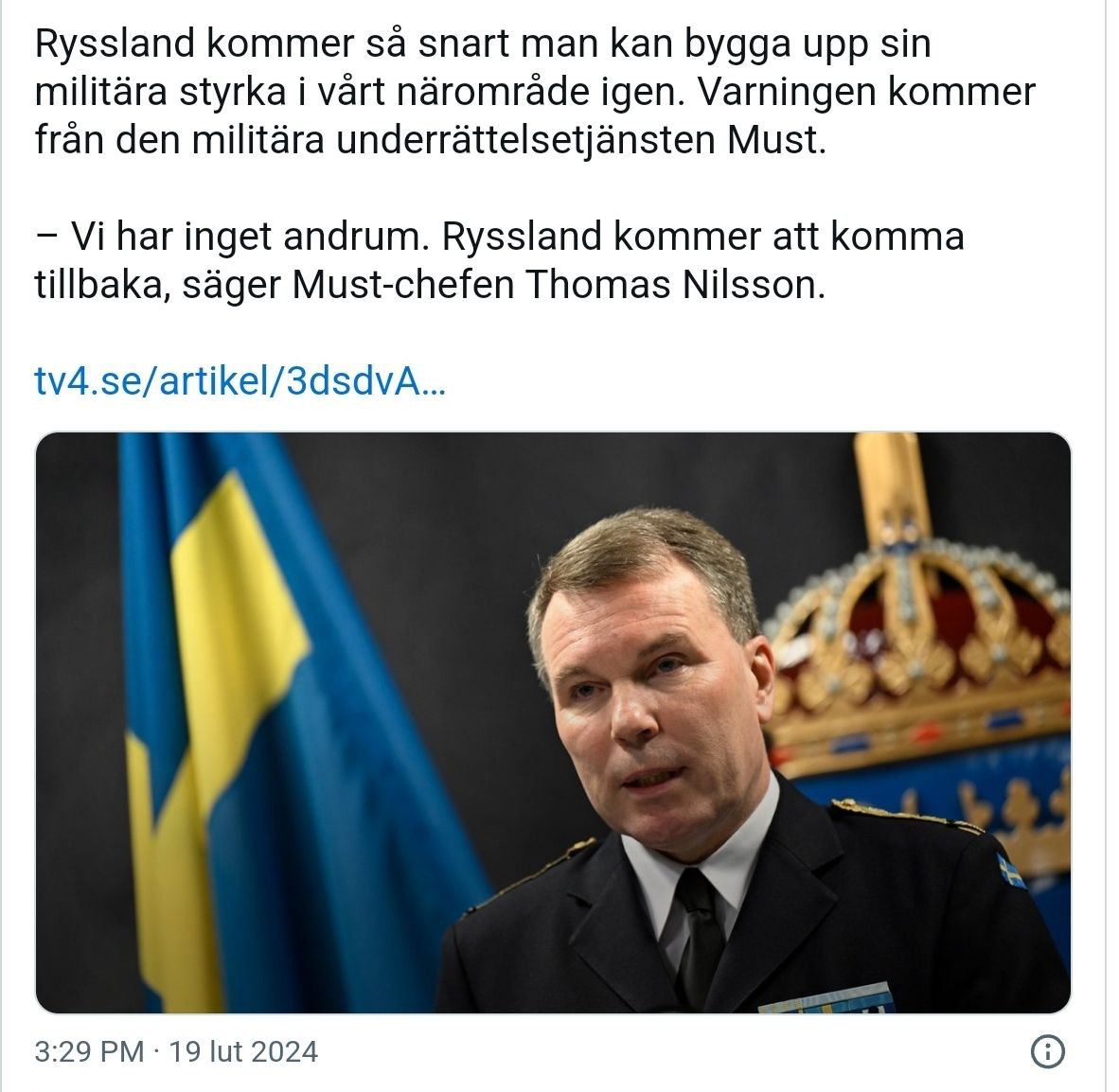 Крайне важно, чтобы мы продолжали поддерживать высокий темп в укреплении вооруженных сил и общей обороны», – заявил шведский разведчик на фоне отказа Венгрии встречаться с американцами по вопросу принятия Швеции в НАТО.