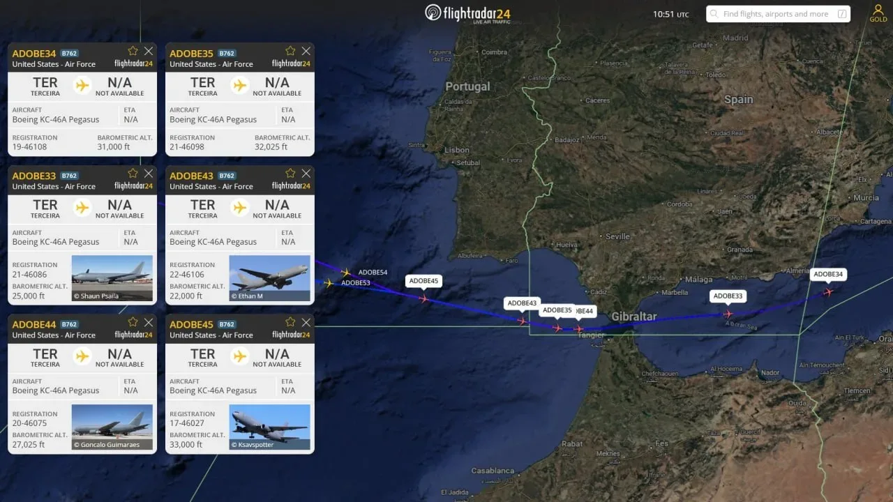 Сразу 12 палубных F/A-18C Hornet из состава 312-й истребительно-штурмовой эскадрильи КМП США осуществили перелет с авиабазы Лажеш на Азорских островах в сторону Ближнего Востока, сопровождаемые самолетами-заправщиками KC-46A Pegasus ВВС США.