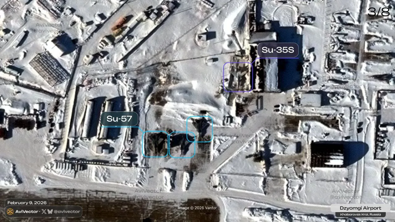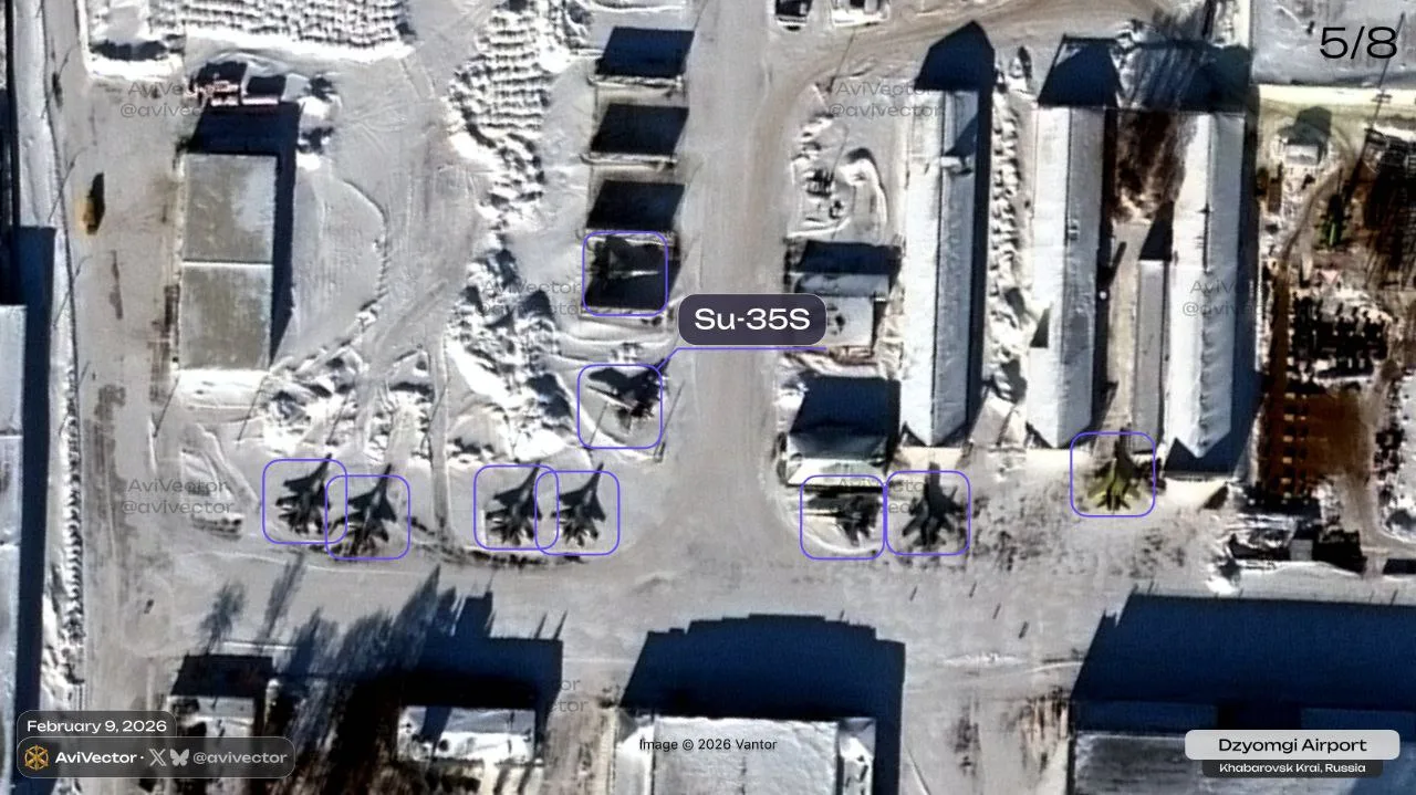 Вполне вероятно, на фото находится как минимум часть бортов, недавно переданных и/или подготавливаемых к передаче ВКС России, поскольку сборка Су-35С и Су-57 осуществляется на мощностях авиазавода имени Ю.А. Гагарина, расположенного как раз в Комсомольске-на-Амуре.