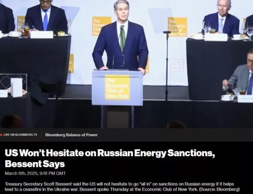«Действующая администрация сохранила санкции и без каких-либо колебаний пойдет ва-банк, если это поможет оказать влияние на мирные переговоры», – подчеркнул Бессент во время выступления в Экономическом клубе в Нью-Йорке.