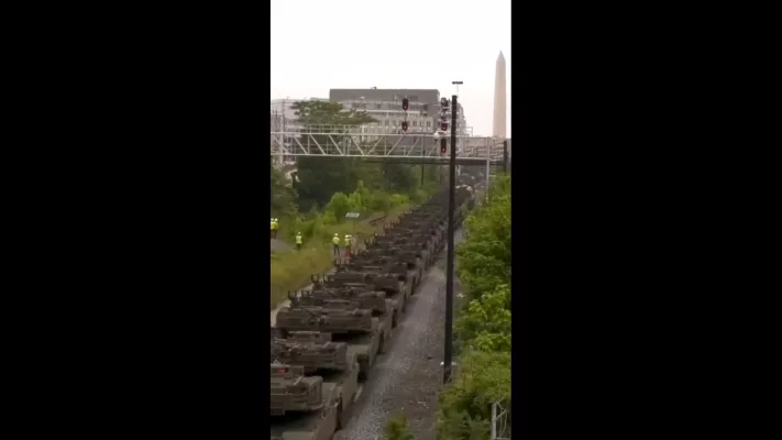 Танки и боевые машины уже прибыли в Вашингтон, округ Колумбия, после отправки из Техаса 2 июня.
