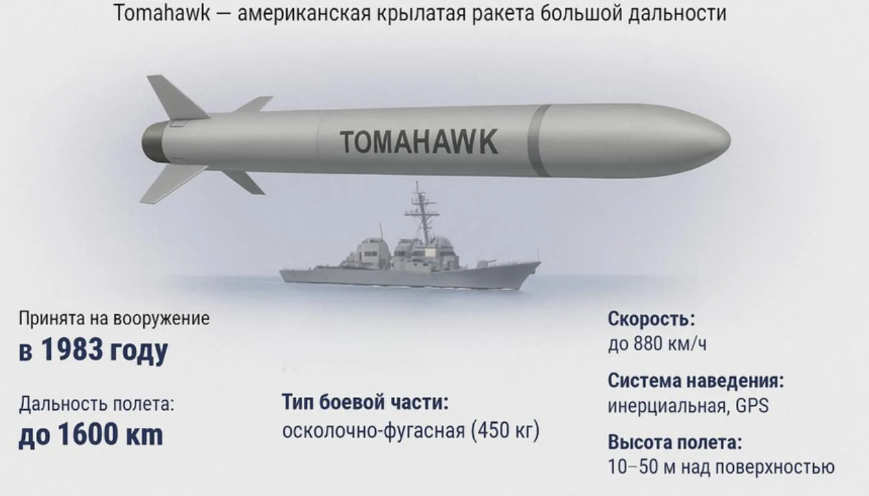 Штаты рассматривают возможность поставить Киеву ракеты Tomahawk, Barracuda* и другие ракеты наземного и воздушного базирования американского производства с дальностью 800 км, пишет газета.