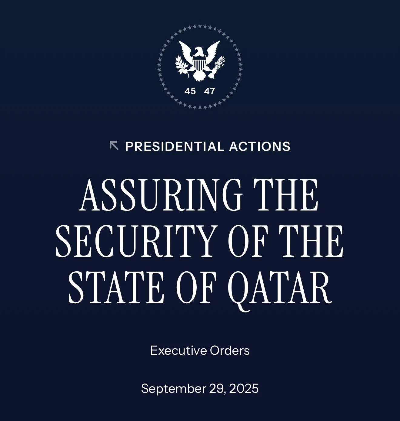 Согласно тексту соглашения, США будут рассматривать любое вооружённое нападение на территорию, суверенитет или критически важную инфраструктуру Катара как угрозу миру и безопасности США.