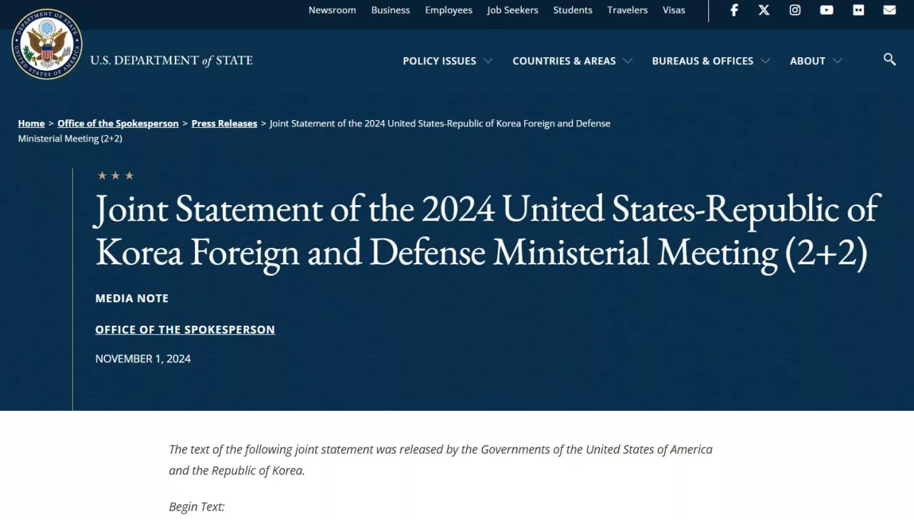 «Стороны также далее определили меры по реагированию на вызовы, связанные с наращиванием сотрудничества КНДР и России в сфере безопасности, решили внимательно следить за оказанием Россией поддержки КНДР»