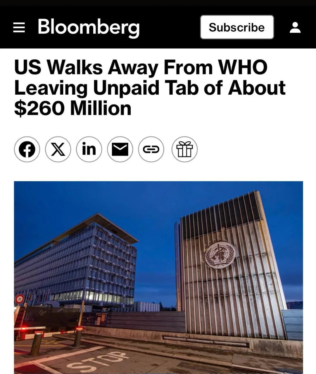 В Минздраве США заявили, что по американским законам страна не обязана выплачивать долг перед выходом из международной организации. Страна полностью прекратила финансирование организации, отозвала своих сотрудников из всех офисов и штаб-квартиры ВОЗ, а также вышла из всех руководящих органов и рабочих групп.