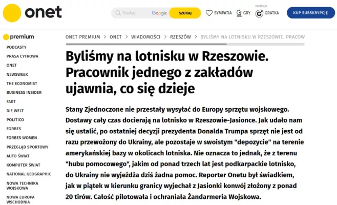 - В аэропорту Жешува продолжается поступление военной техники из США. Вооружение складируется на базе американских войск рядом с аэропортом в виде запасов, сообщает Onet.