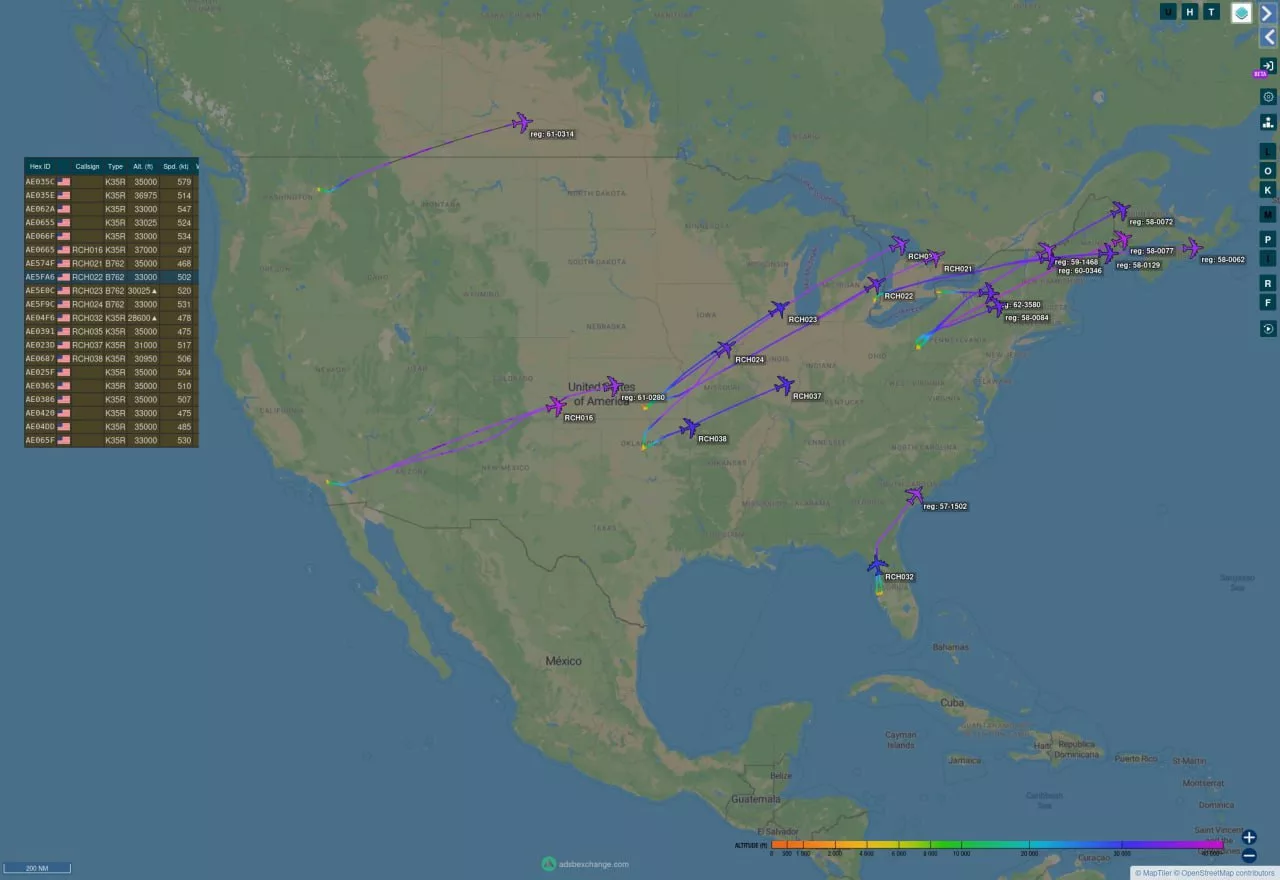 Впервые за долгое время фиксируется высокая активность американской военной авиации: десятки самолётов-заправщиков KC-135 и KC-46 покинули базы в США и направились в сторону Европы. Об этом свидетельствуют данные Flightradar24 и других авиационных трекеров.
