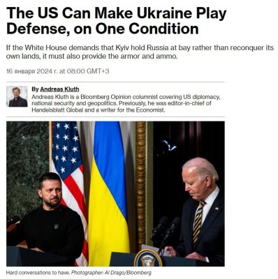 Колумнист агентства Bloomberg Андреас Клут считает, что президенту Украины сообщат о необходимости изменить стратегию на полях ВЭФ в Давосе. Сделает это советник по национальной безопасности США Джейк Салливан.