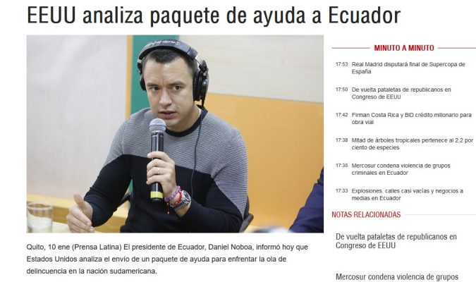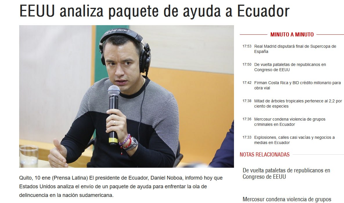 «Одна из форм – это обмен старой украинской и российской техники на современное оборудование на сумму $200 млн. Это мы завершим в конце текущего месяца. Для дальнейшей помощи вчера днем после издания указа мы провели встречу с послом Фитцпатриком из США, и он сказал, что через несколько дней, два или три дня, они представят пакет помощи для Эквадора», – заявил президент Нобоа.