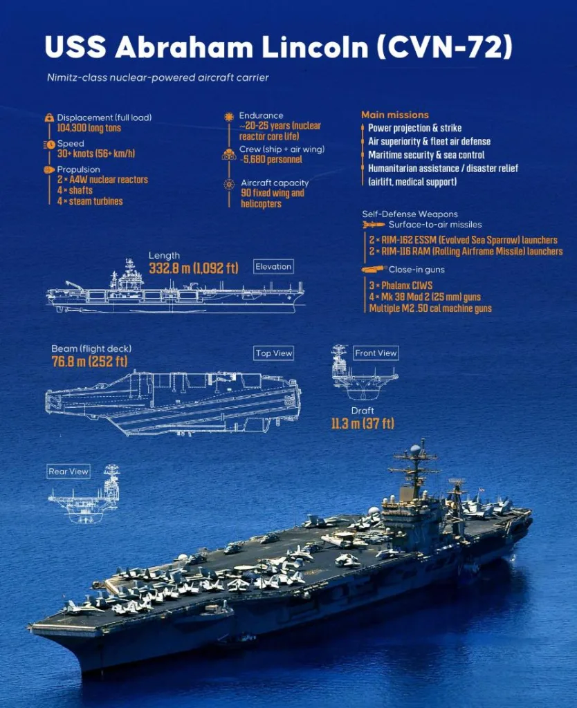 Сообщается, что авианосная ударная группа ВМС США во главе с атомным авианосцем USS Abraham Lincoln вошла в Малаккский пролив и движется в сторону Ирана.