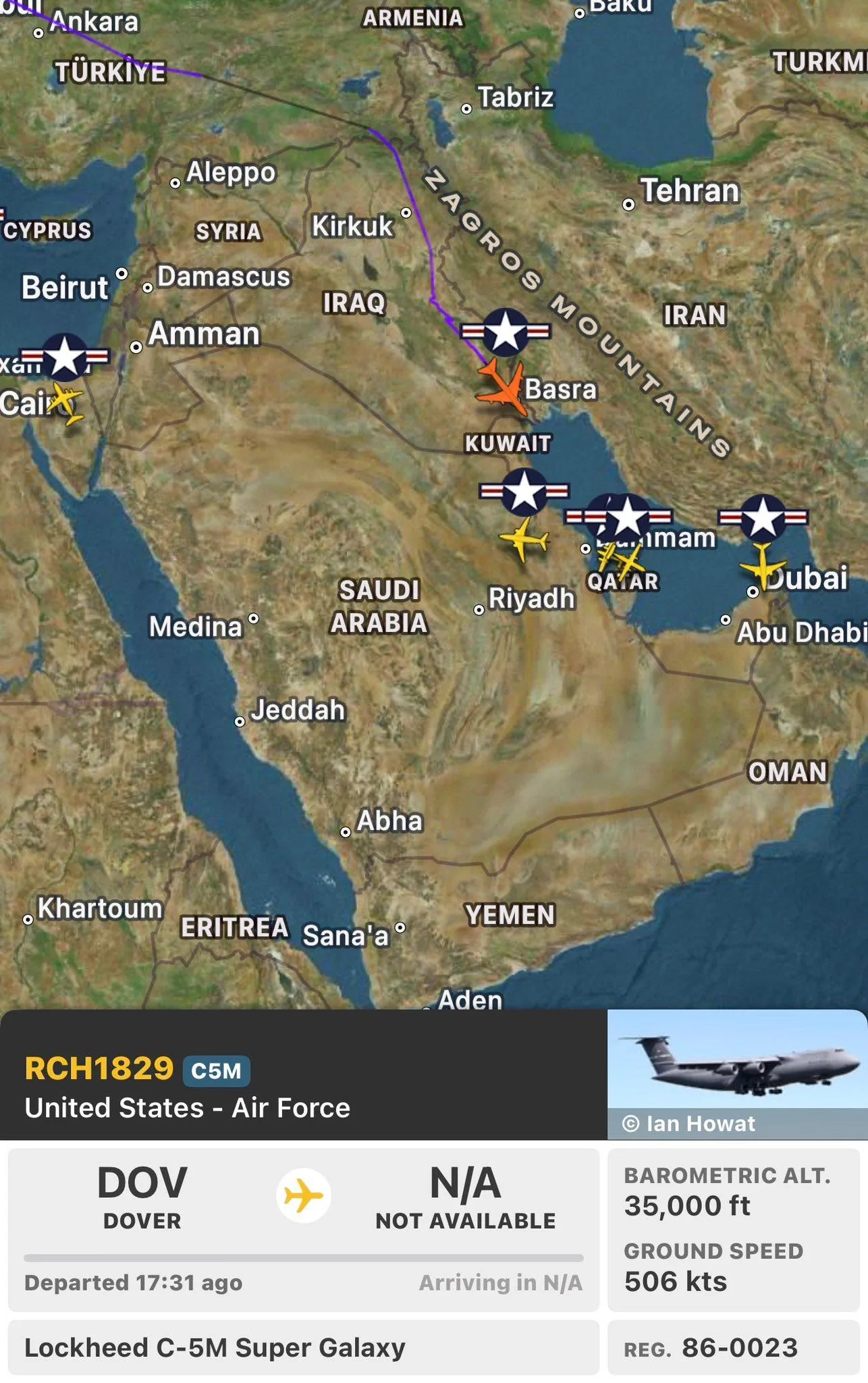 Там же, судя по всему, находятся и американские политики, поскольку в Бахрейне «всплыл» правительственный борт США Boeing C-40 Clipper.