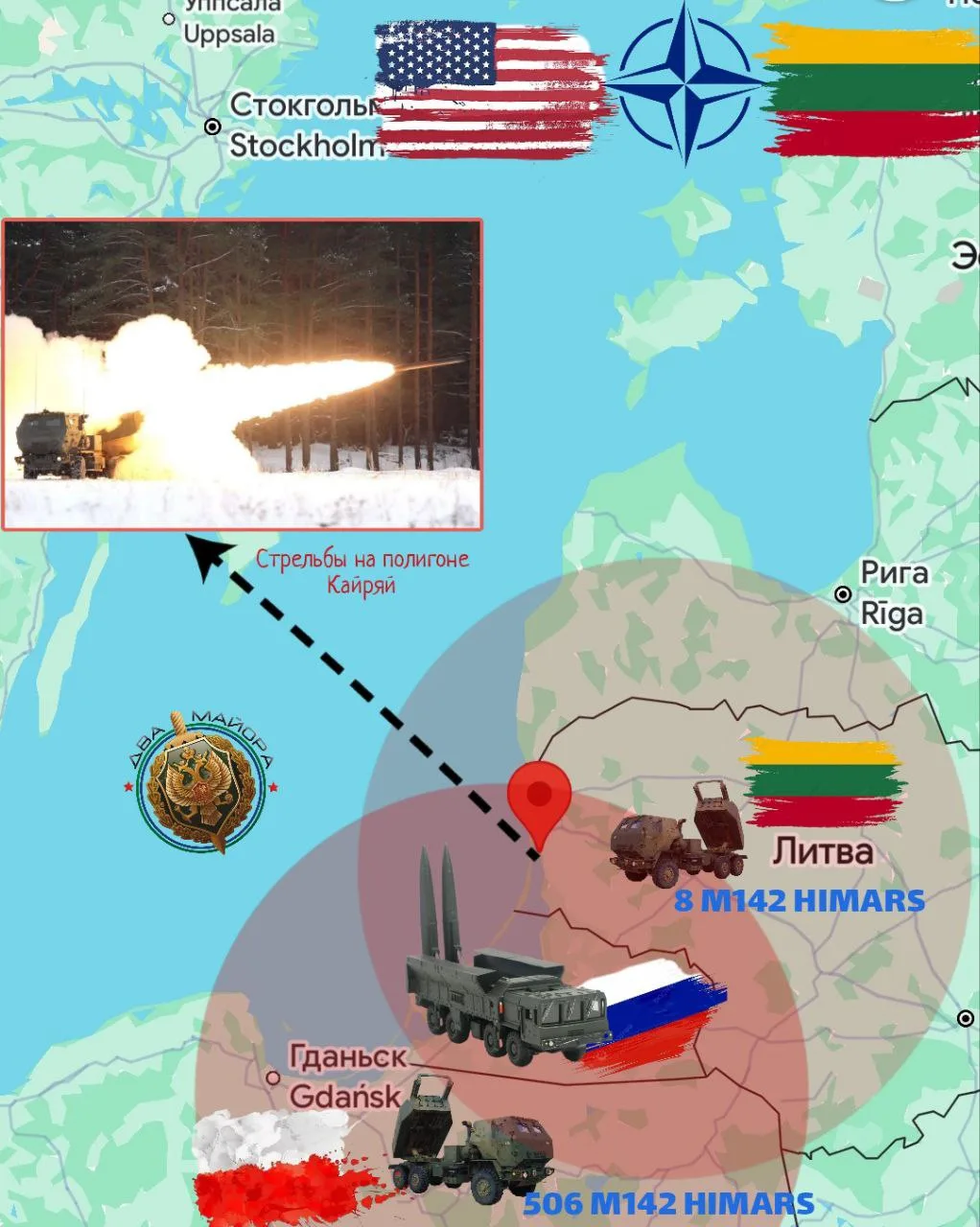 ✨Неслучайно местом проведения стрельб выбран полигон Кайряй (Kairiai Training Area) в Клайпедском районе, недалеко от города Клайпеда, который расположен в 35 км от границы с 🇷🇺Калининградской областью. Размещение HIMARS с ракетами максимальной дальности сделает калининградский регион насквозь простреливаемым этим видом вооружения. С другой стороны границы – 🇵🇱Польша, которая уже получила 20 РСЗО HIMARS, а в период с 2026 по 2030 год получит ещё 486 единиц (‼️).