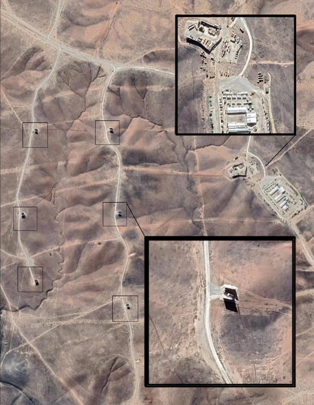 На спутниковых снимках представлена база с шестью используемыми пусковыми площадками, на каждой из которых видна пусковая установка THAAD внутри укрытия.