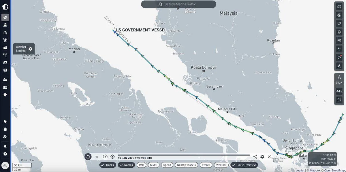 Из открытых морских онлайн-трекеров известно, что авианосец «Авраам Линкольн», в сопровождении ракетного крейсера и двух эсминцев, прошёл Малаккский пролив и выключил транспондер автоматической идентификационной системы (AIS), скрывшись от посторонних наблюдателей. Прибытие кораблей в Персидский залив ожидается в начале следующей недели.