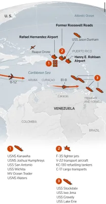 С августа США усилили военное присутствие в Карибском море: направлены корабли, атомная подлодка, истребители и разведывательные самолёты. По данным Reuters, это крупнейшее военное развертывание в регионе со времён операции 1994 года на Гаити.