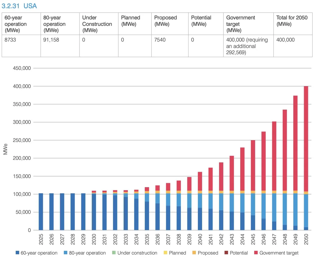 Основу текущего баланса составляют действующие блоки с продлённым сроком эксплуатации на 60 и 80 лет, которые обеспечивают около 100 ГВт мощности. Новое строительство пока остаётся минимальным, однако в планах и проектах заявлены тысячи мегаватт, а основной акцент сделан на достижение правительственной цели в 400 ГВт, что потребует ввода почти 300 ГВт дополнительных мощностей. Это означает массовое строительство новых реакторов, включая крупные проекты и перспективные технологии. Атомная энергетика в США больше не рассматривается как «мост» или временное решение — её прямо позиционируют как фундамент долгосрочной энергетической безопасности, декарбонизации и промышленного роста. По сути, речь идёт о самом амбициозном атомном расширении в истории страны.