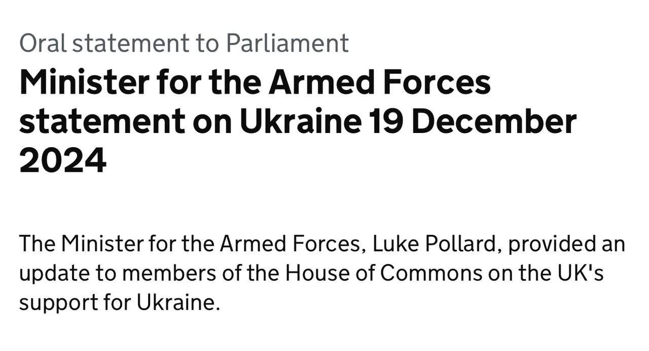 Статс-секретарь министерства вооруженных сил Великобритании Люк Поллард на днях докладывал членам Палаты общин обновленную информацию о поддержке Великобританией Украины. И там прозвучало следующее: