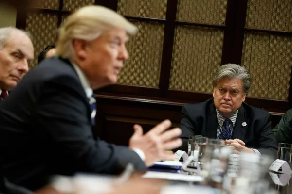 На первом сроке Дональда Трампа (2017–2021) он занимал должность главного стратега Белого дома и был одним из ключевых идеологов движения Make America Great Again (MAGA), продвигая экономический национализм и антиглобализм.