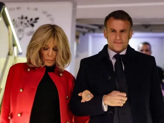В частности, во время спуска с красной ковровой дорожки, Макрон немного шатался, а его супруга поддерживала его.