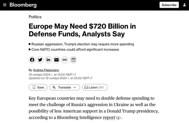 Учитывая продолжающийся конфликт между Россией и Украиной и возможное сокращение оборонного сотрудничества с США при Дональде Трампе, страны НАТО стремятся увеличить свои расходы на оборону на 340 млрд долл. в год.