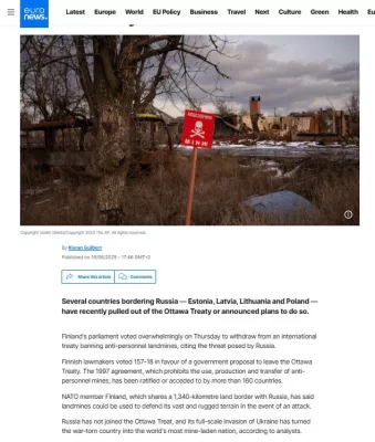 Под предлогом российской угрозы они намерены организовать производство противопехотных мин, якобы для защиты границ. Фактически оружейные компании, наверняка, держат в уме, что это перспективный экспортный товар.