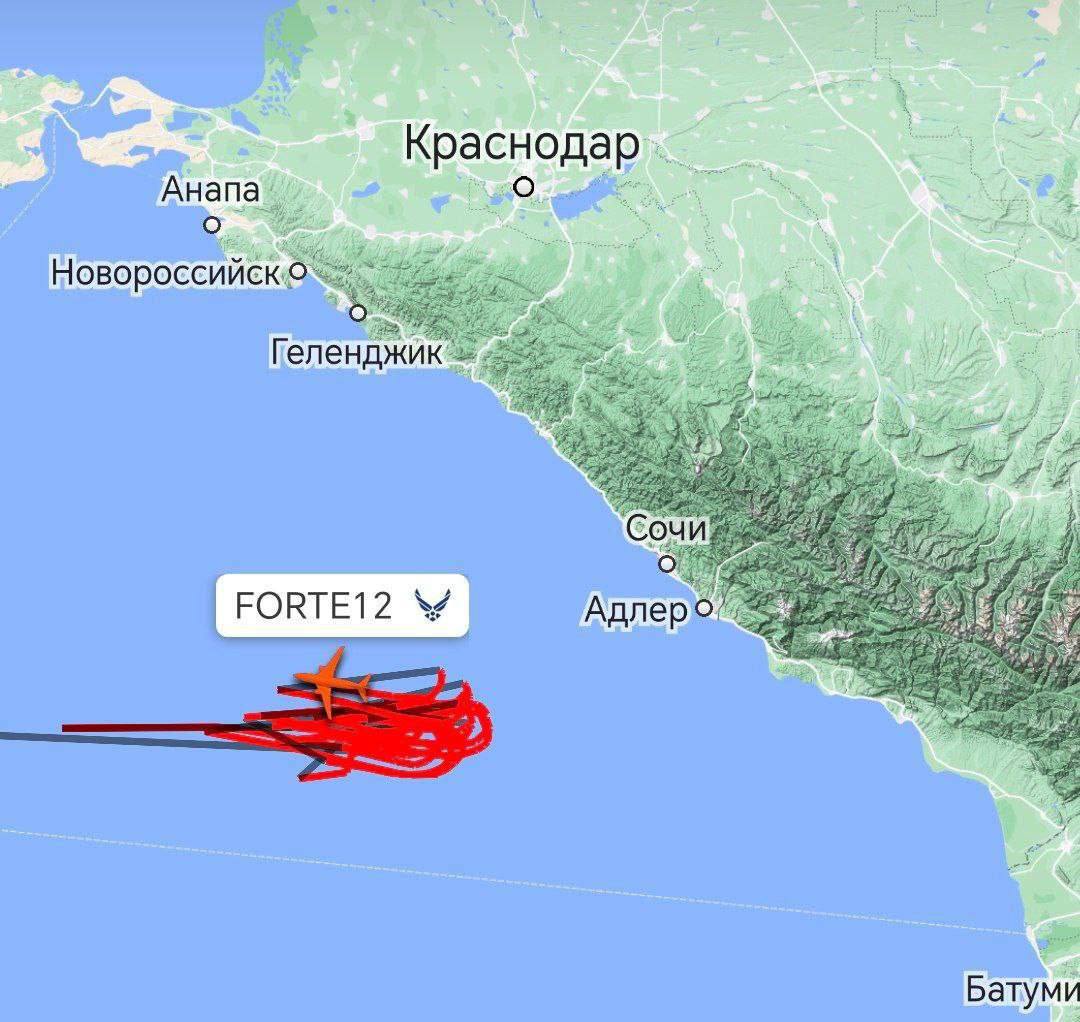 ВКС РФ только что вытеснили разведывательный беспилотник RQ-4B Global Hawk ВВС США из воздушного пространства возле Сочи. Судя по маршруту его полёта, очень и очень большой интерес у американских военных вызывает Краснодарский край и в частности резиденция президента РФ.