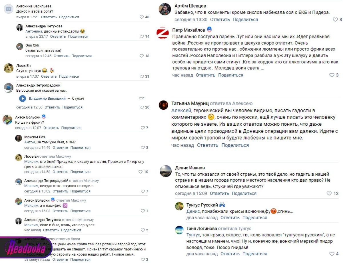 Позже в СМИ начали тиражировать заголовки о том, что женщину задержали за поддержку Украины, а якобы «донес» на нее студент из Донецка. Теперь парня гнобят в сети, названивают ему и всячески его провоцируют, не давая спокойно жить. Участник СВО не отрицает случившегося, однако никакого злого умысла в его попытке понять другого человека не было. В беседе с Readovka он отказался как-то комментировать произошедшее, сославшись на то, что слишком напуган и уже боится лишний раз что-то кому-то говорить. Патриоты у него на странице и в своих личных соцсетях, в отличие от либералов, выражают поддержку студенту, на своей шкуре почувствовавшему, что такое быть на волосок от гибели, защищая Родину.