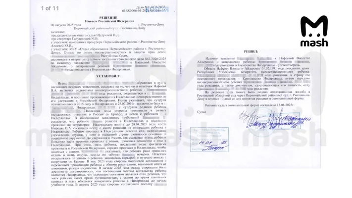 В апреле 2025-го Виолетта забрала Никиту на каникулы и отвезла на полуостров. Через некоторое время латвиец подал на неё в суд, дело передали в Ростов-на-Дону. Мужчина заявил, что бывшая незаконно удерживает у себя их сына. В ответ она пояснила: общению ребёнка с отцом не препятствует, мальчик сам не хочет контактировать с папой, так как боится его.