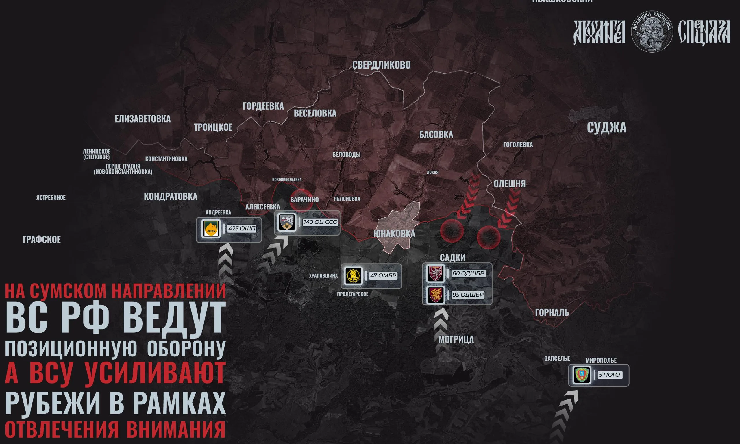 💭Чуть западнее в районе Варачино возможны попытки вклинения противника, так как, помимо размещенных там сил 425 ОШП, туда прибыли ДРГ из состава 140 ОЦ ССО, которые уже несли потери у Юнаковки.