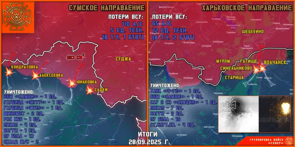 Фронтовая сводка на 29 сентября 2025 года от группировки Север