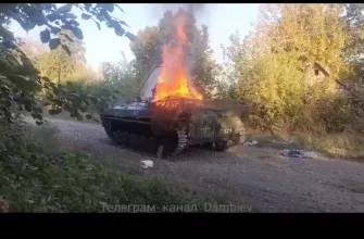 Уничтоженная в Курской области ударом FPV-дрона проекта «NARODNY FRONT» украинская БМП-2 №121 с мангалом