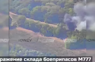 Артиллеристы группировки «Восток» сначала утилизируют полевой склад артиллерийских боеприпасов, а затем аннигилируют гаубицу М777 неподалёку
