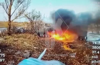 Добивание FPV-дронами на оптоволокне шведского двухзвенного гусеничного бронированного вездехода BvS 10 и британского бронетранспортёра FV103 Spartan на Покровском направлении