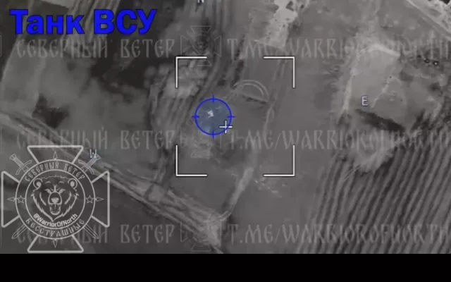 На кадрах точное попадание и эффектная детонация БК украинского танка после прилета российского барражирующего боеприпаса.