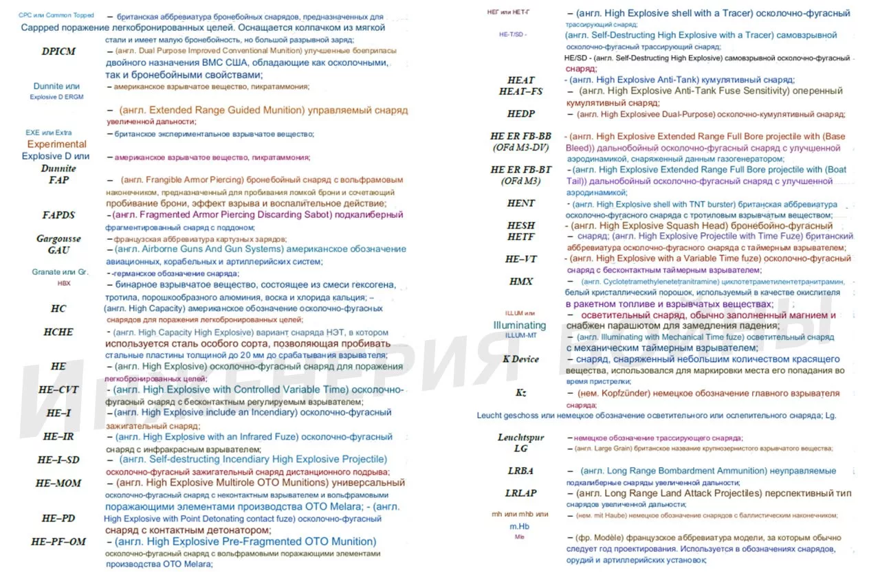 Поэтому, для понимания какие снаряды использует противник, выкладываю данную табличку, так как найти такие сведения в сети бывает затруднительно.