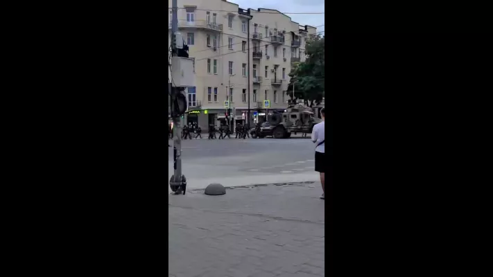 Колонны бронетехники ЧВК «Вагнер» без сопротивления заходят в город, после чего останавливаются возле здания штаба ЮВО, блокируют его и занимают оборону вокруг. Внутри будут проходить те самые знаменитые переговоры Пригожина с замминистром обороны Юнус-Бек Евкуровым и первым замом начальника ГУ ГШ Владимиром Алексеевым.