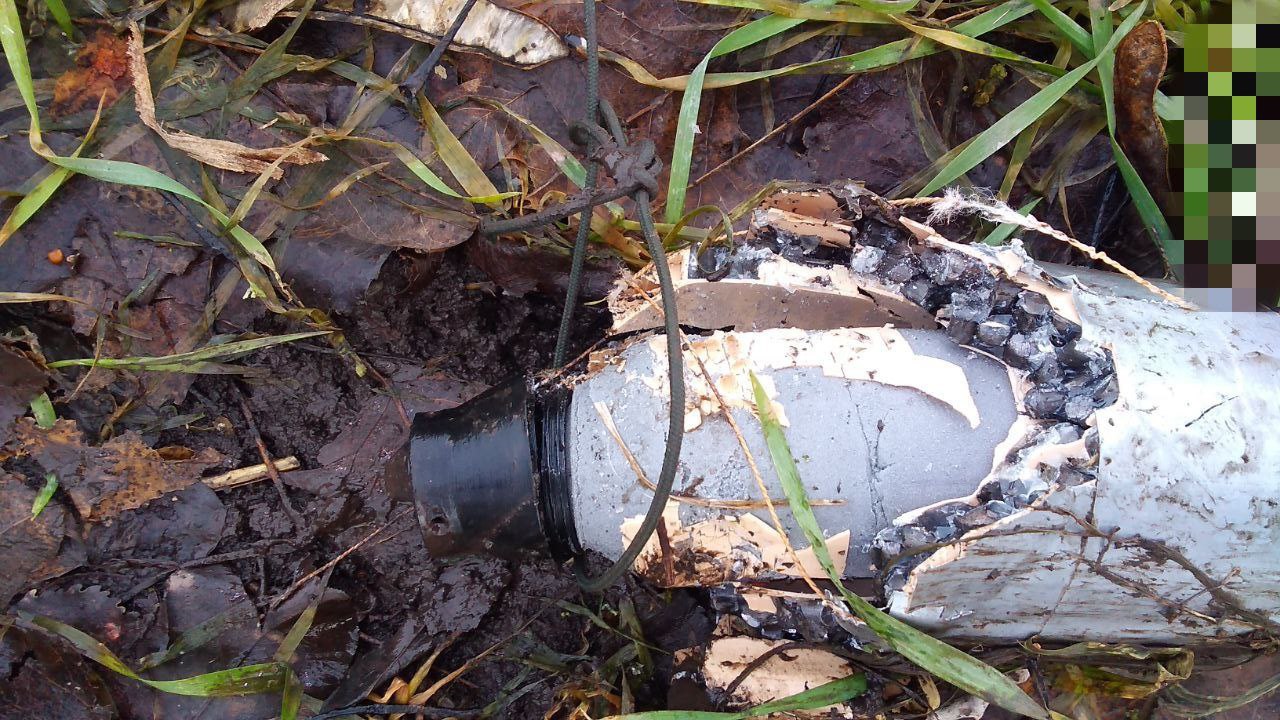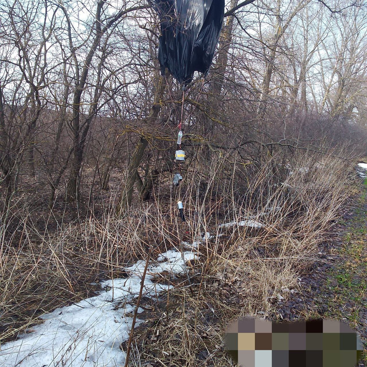 Воздушный шар, под который подвешен балласт из бутылки, бочонок с управляющей электроникой и собственным GPS, коробочка со спутниковым трекером SPOT Trace и бабаха типично украинской конструкции из двух труб и рубленым прутом в роли поражающих элементов.