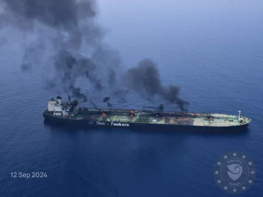 Напомним, танкер Sounion под греческим флагом загорелся 21 августа после удара по нему ракеты хуситов. На борту судна 150 тыс. нефти, но разлива на данный момент нет. Однако существует явная угроза экологической катастрофы.