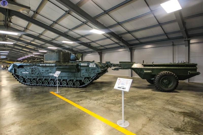 А этот монстр с прицепом — британский тяжёлый огнемётный танк «Churchill-Crocodile», разработанный в 1942 г. на базе основного тяжёлого пехотного танка A22 Mk.IV «Churchill» и производившийся до 1944 г.