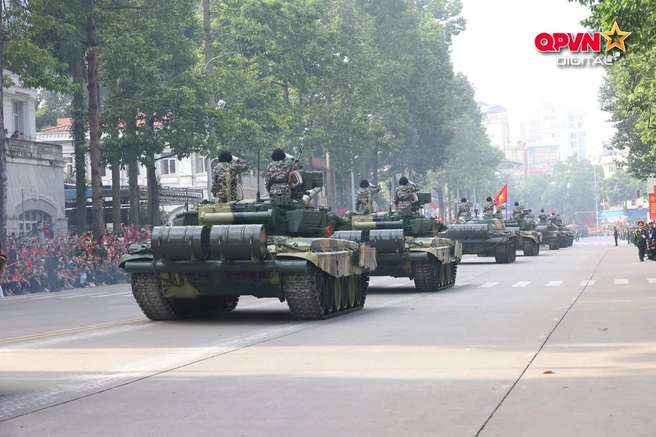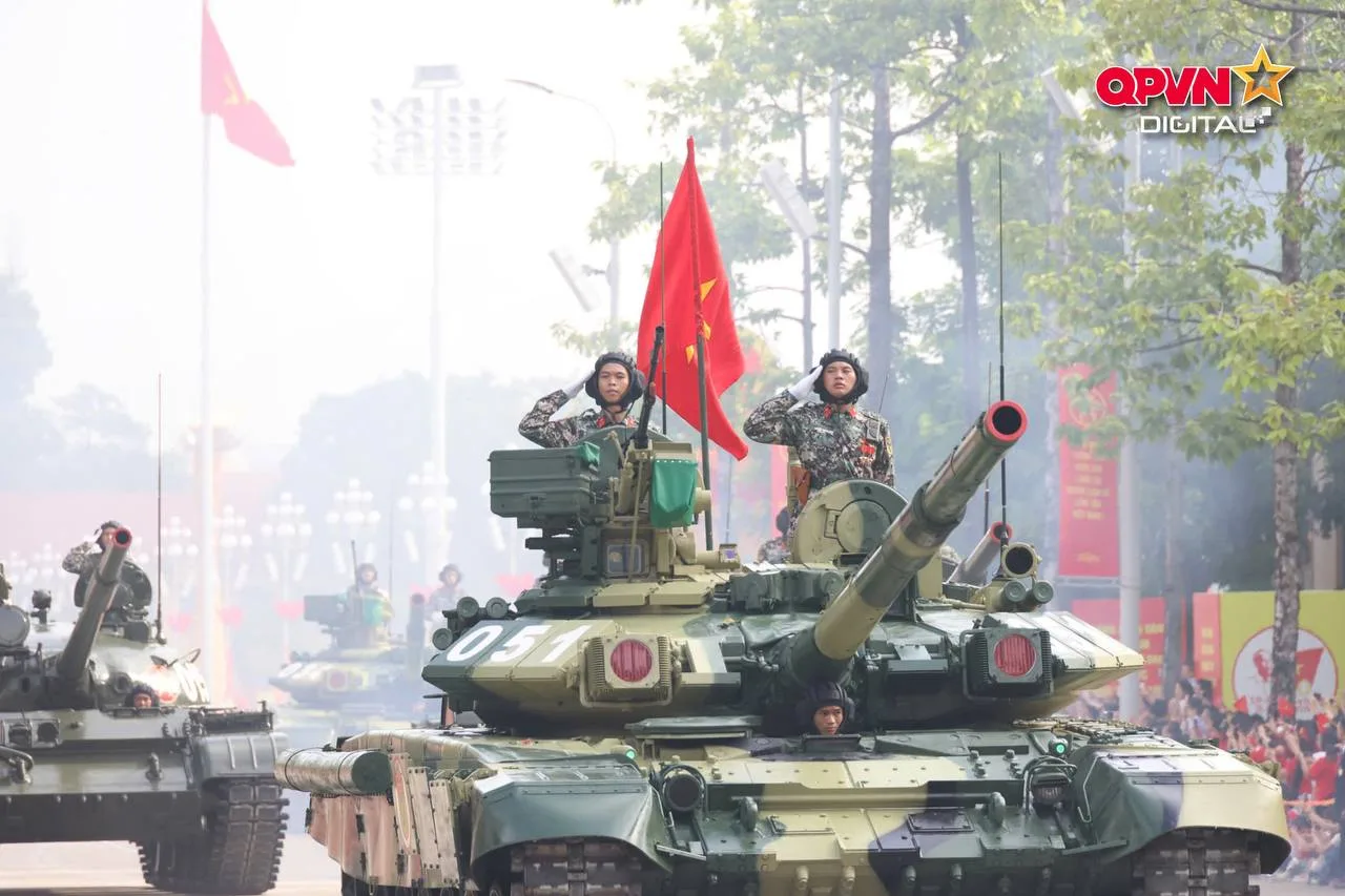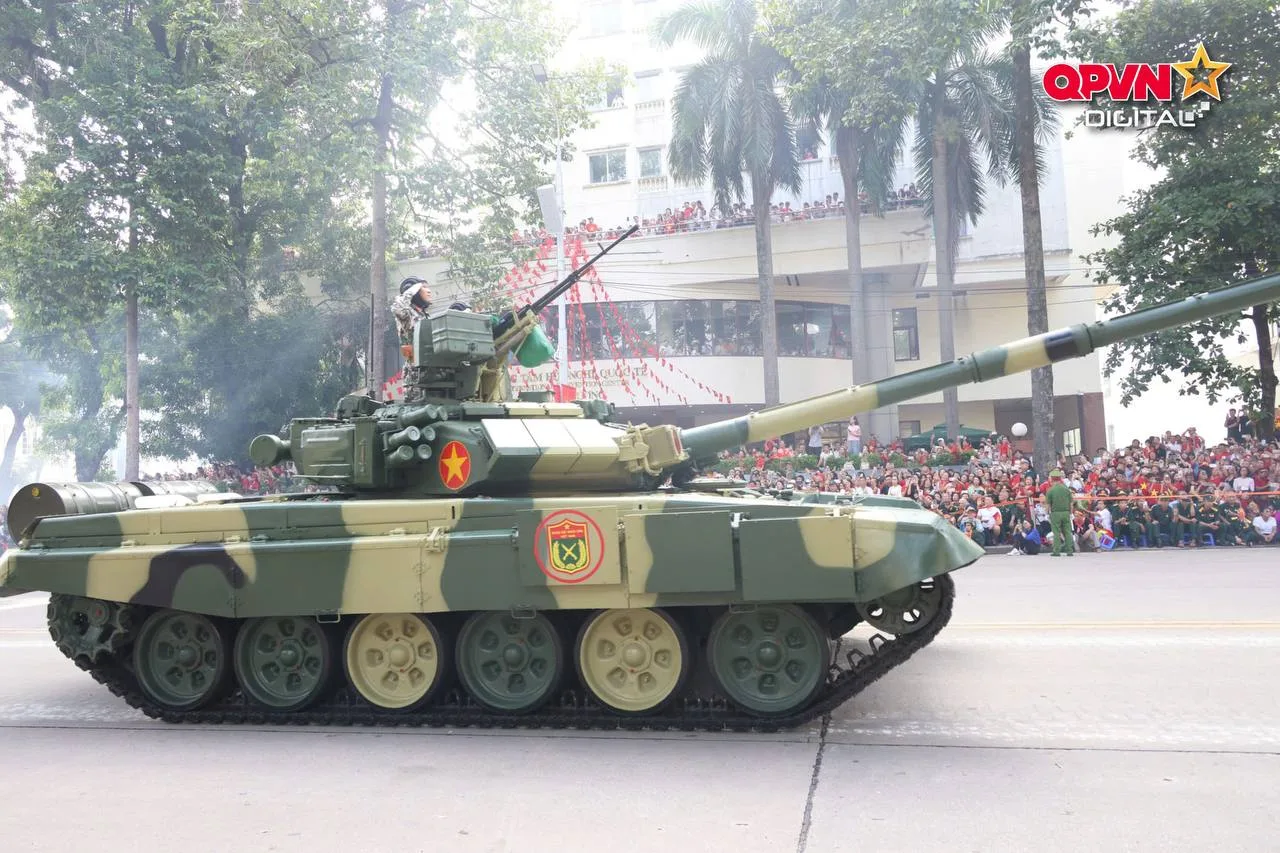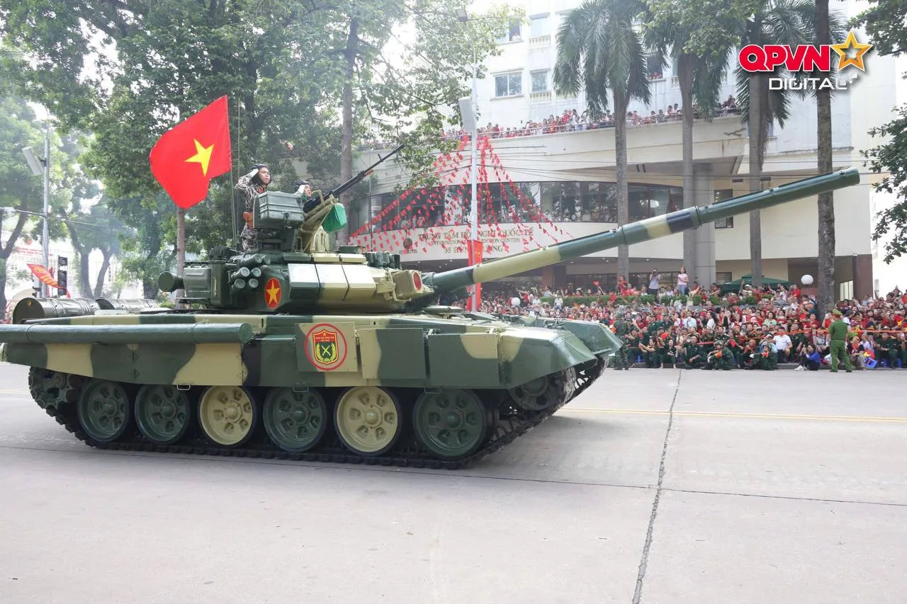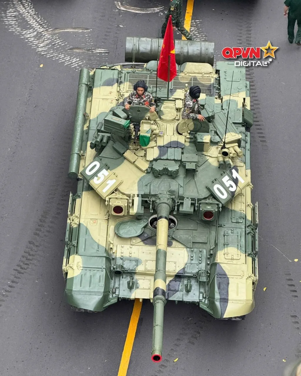Напомним, что комплектация машин для Вьетнама мало отличается от российской. И практически полностью соответствует тому, что еще в 2013 году УВЗ показывал на выставке в Перу. Основное внешние отличие: «старые» «квадратные» экраны на бортах, Штора-1М, кондиционер и несколько отличающаяся бронировка крышки ночного прицела. Всего Вьетнам получил из России 64 танка Т-90С.