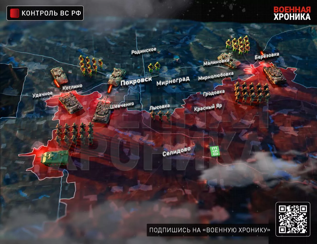 Попытки ВСУ огрызнуться на этом участке фронта продолжаются, но цена одновременного удержания направления и коротких контратак для «срезания» выступов становится всё выше. Судя по всему, центральная задача, поставленная войскам Сырским — любыми средствами не дать РФ развить успех и пробиться западнее, как это было, например, сразу после взятия Очеретина. Кое-какие выводы из боевых действий в ставке ВСУ всё-таки делают, поэтому ждать, что у РФ под Покровском всё пройдёт как по маслу пока не стоит.