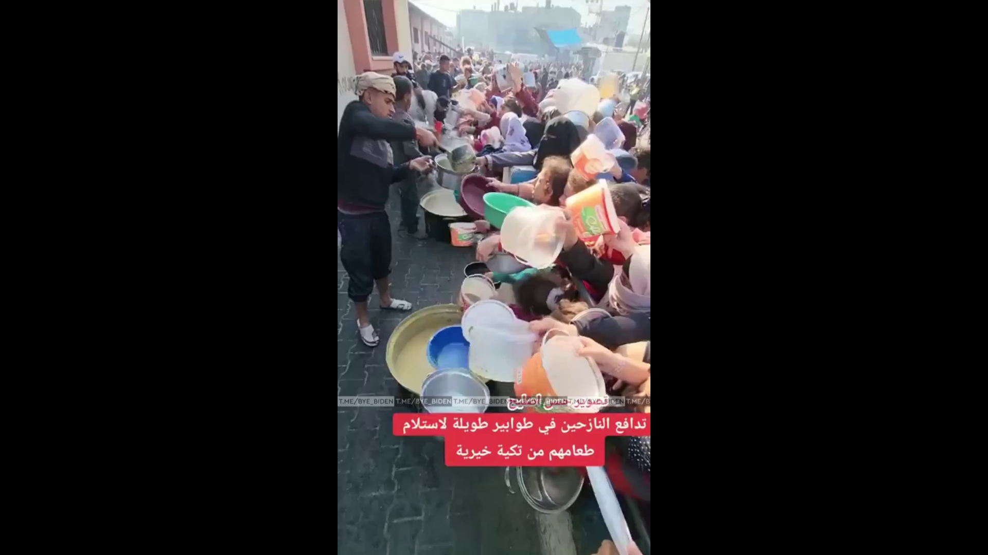 Беженцы стоят в длинных очередях, чтобы получить еду в некоммерческом хосписе.