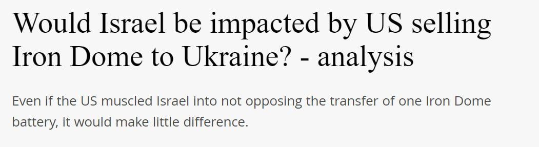 ✖️ Кроме того, их передача ослабит оборону Израиля. Ранее стало известно, что батареи «Железного купола» Украине готовы передать США.