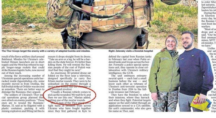The Times ранее охотно печатал рассказы украинских националистов о военных преступлениях. Были там и жуткие признания, как боевики устраивали засаду на группу по эвакуации раненых.