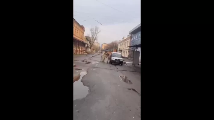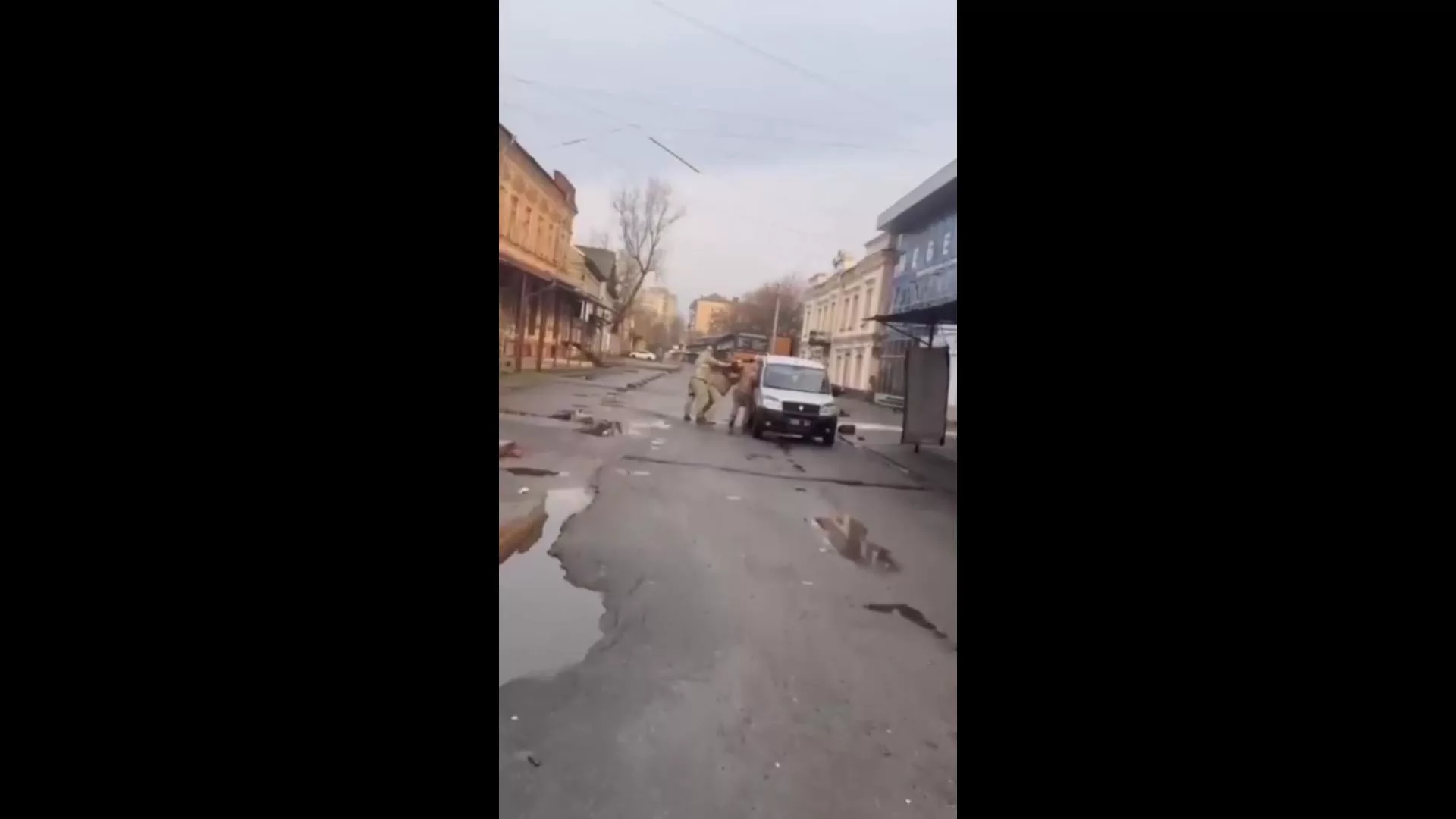 На помощь к потенциальному фронтовику подоспел друг с камерой, который стал фиксировать происходящее на видео.