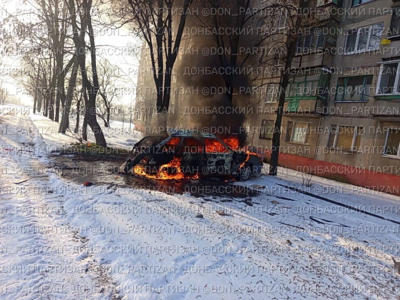 FPV-дроном поражён внедорожник Nissan Pathfinder. Образовалось возгорание. Повреждена передняя часть автомобиля и элементы силового каркаса, что исключает его дальнейшее использование.