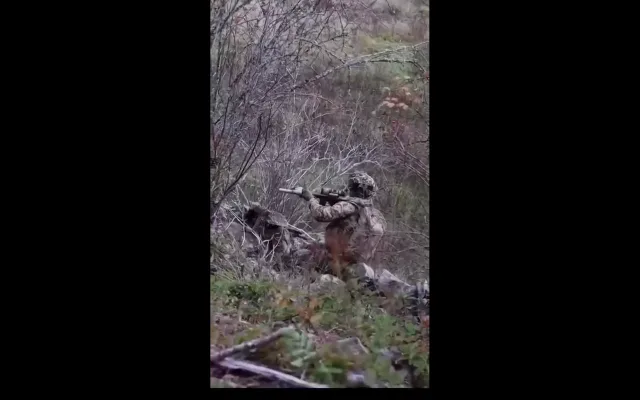 После выстрела слышны стоны боевика, который проживает последние секунды в муках.